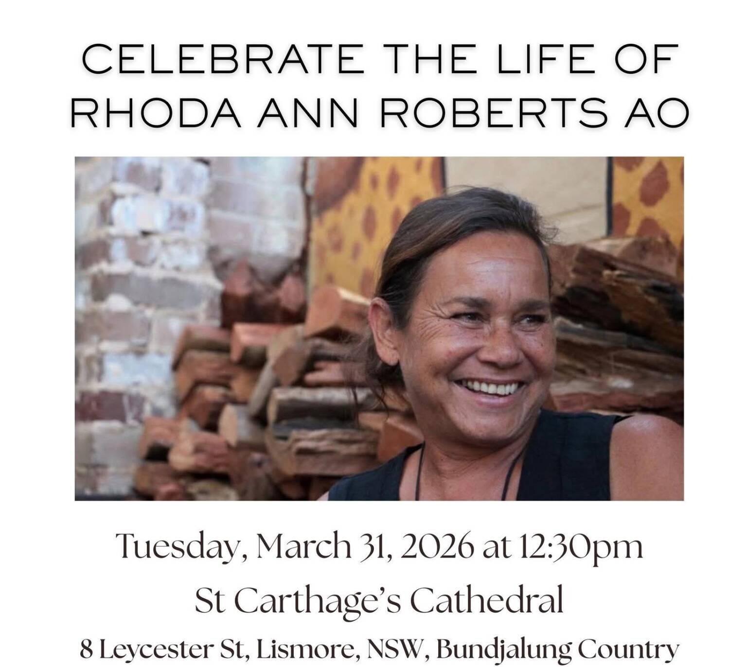 The funeral service will be held at St Garthage’s Cathedral in Lismore beginning with a smoking ceremony. Her final resting place with be at the Memorial Gardens cemetery.